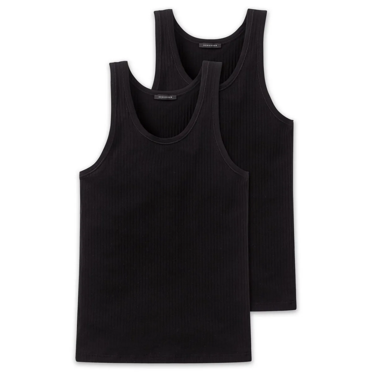 Schiesser Authentic 2P Heren Onderhemd - Zwart - Maat L