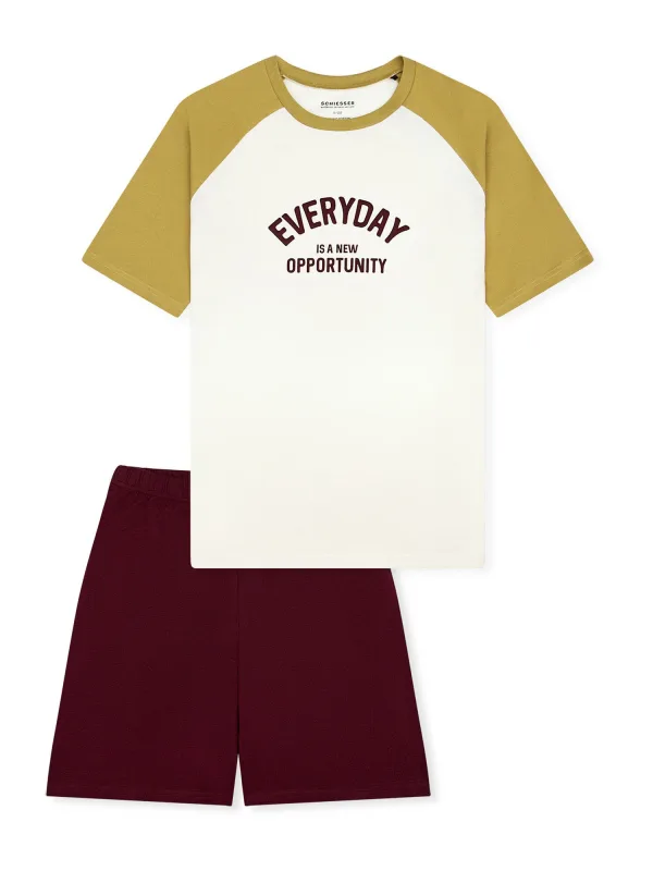 Specificaties: SCHIESSER Nachtkledij ‘ Teens Nightwear ‘ kaki / bordeaux / offwhite