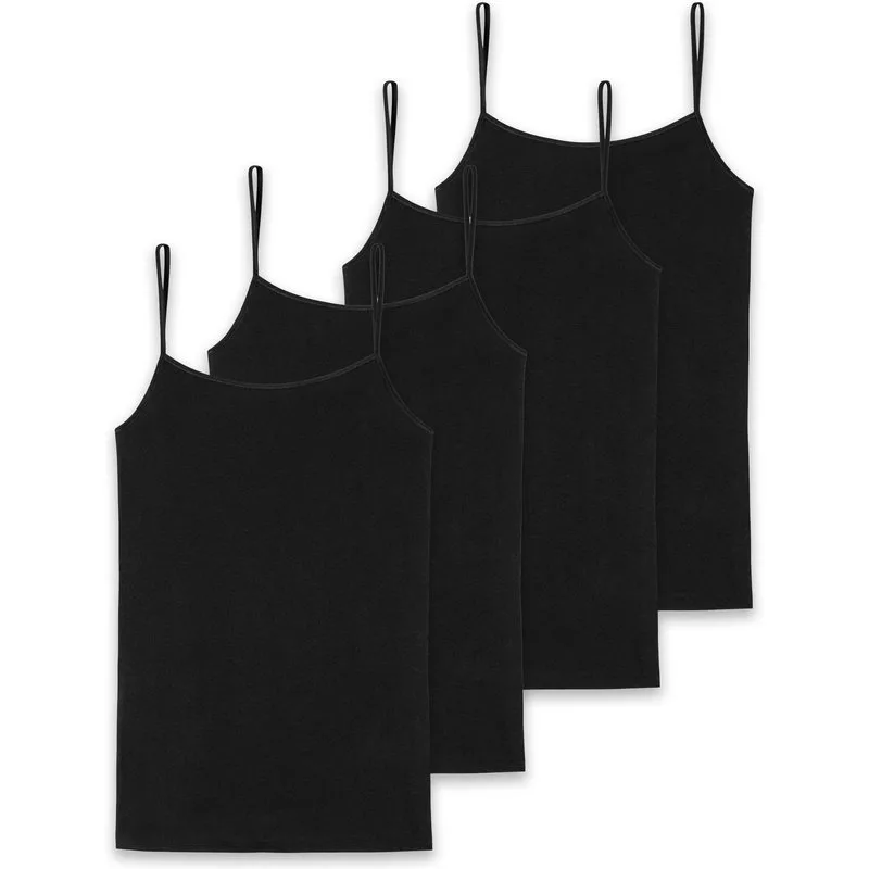 Spaghettitopje van het merk SCHIESSER in een voordelige verpakking van vier stuks. Zachte, elastische single jersey stof voor een comfortabel gevoel. Ideaal als ondershirt.