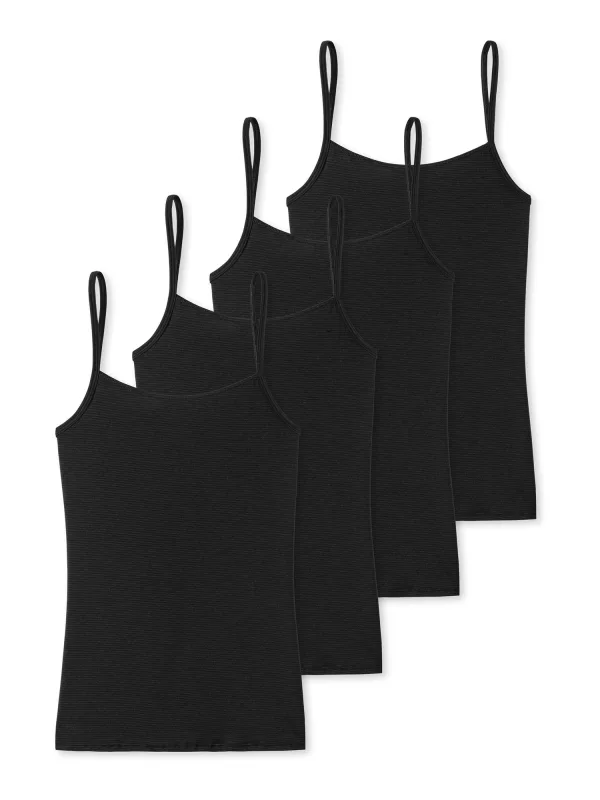 Materiaal: Jersey; Halstype: Ronde hals; Motief: Effen; Soort bandjes: Spaghettibandjes; Pasvorm: Normale pasvorm; Aantal: 4 Pack; Armlengte: Mouwloos; Lengte: Normale lengte