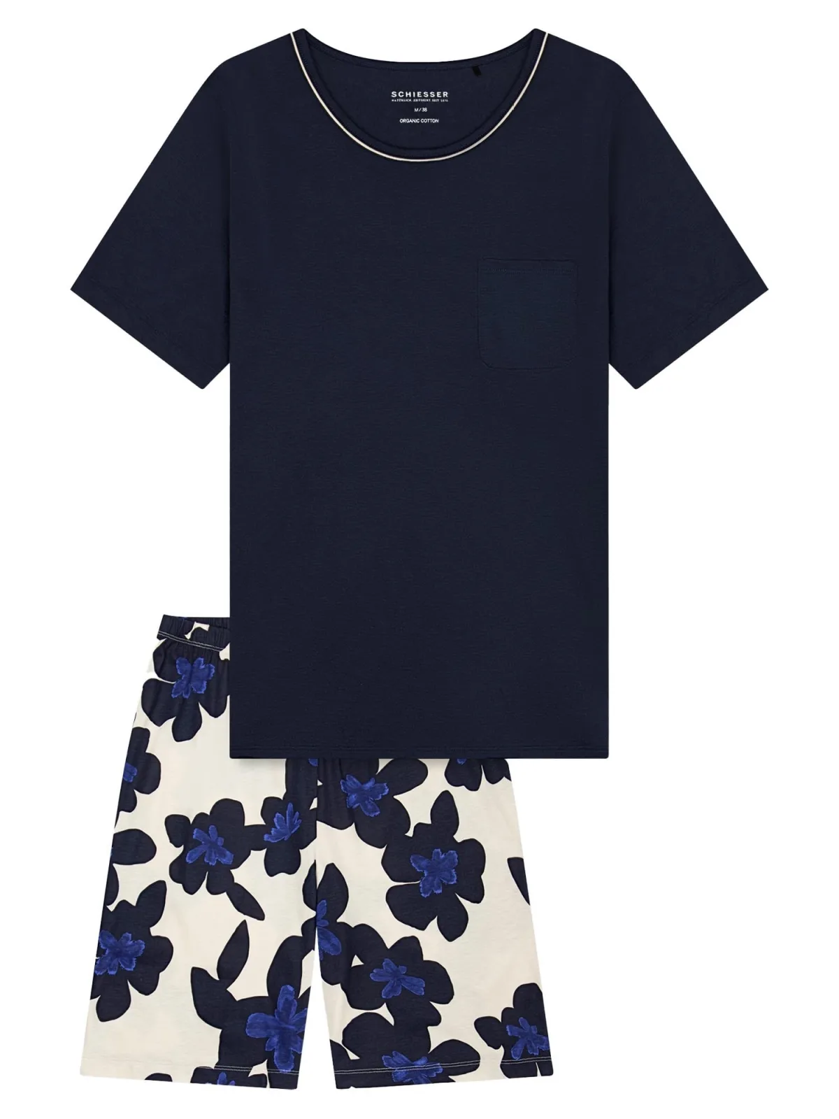 Specificaties: SCHIESSER Pyjama ‘Comfort Nightwear ‘ donkerblauw / offwhite