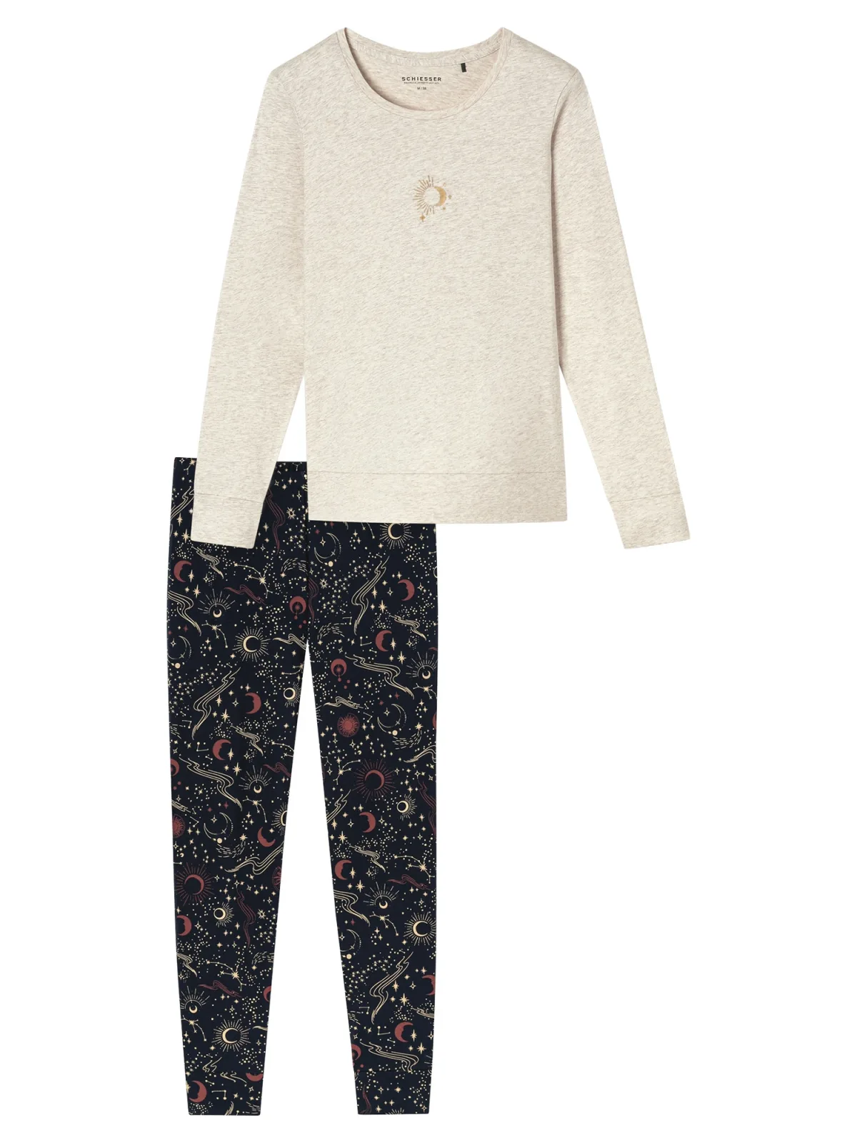 Specificaties: SCHIESSER Pyjama ‘ Family ‘ beige gemêleerd / oudroze