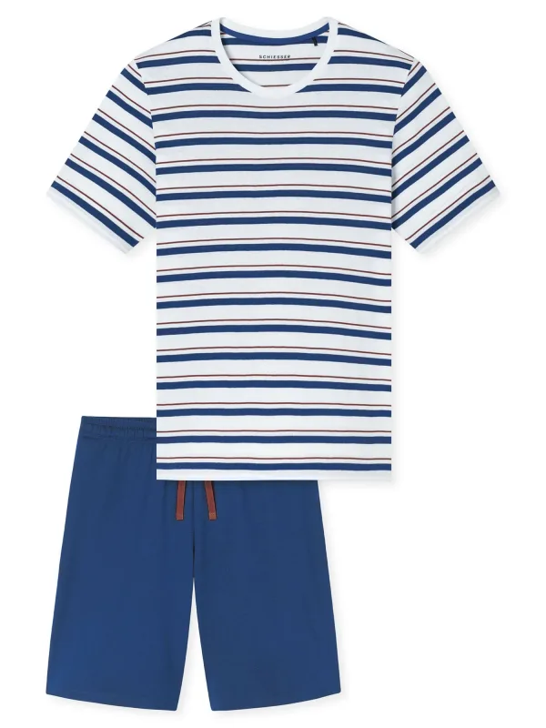 Specificaties: SCHIESSER Pyjama kort ‘ Casual ‘ blauw / wit