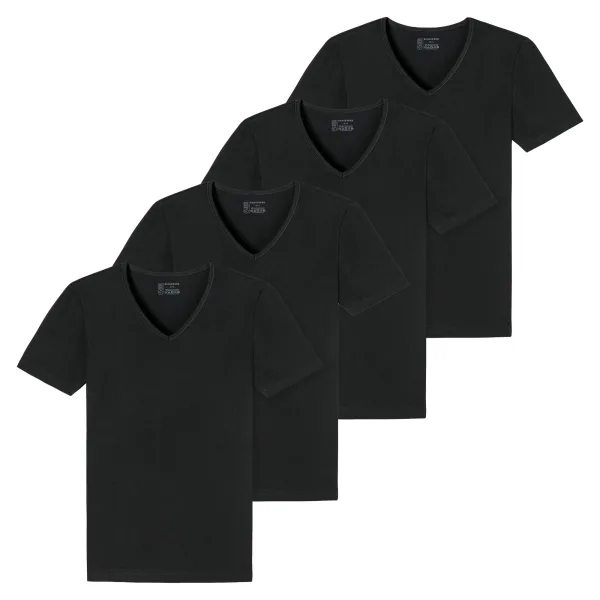 T-shirts in een verpakking van vier. Aangenaam zachte single jersey kwaliteit. SCHIESSER serie "95/5". Goede vormvastheid.
