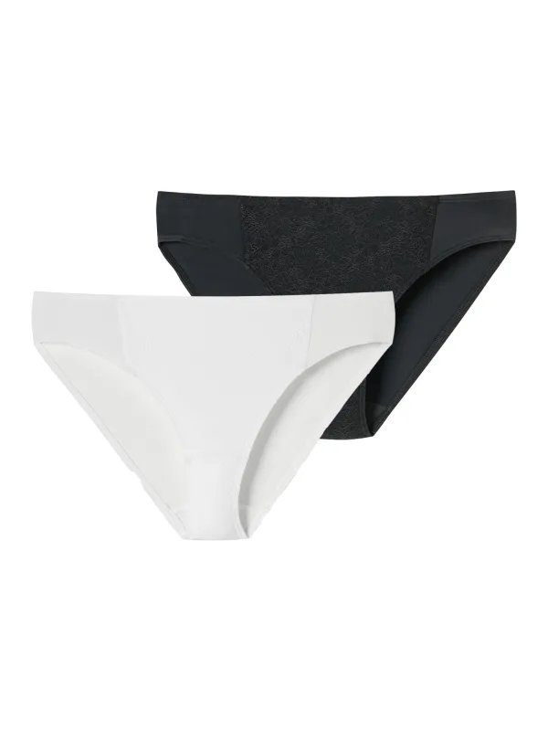 Motief: Effen; Details: Kant; Aantal: 2 Pack; Taillehoogte: Mid waist