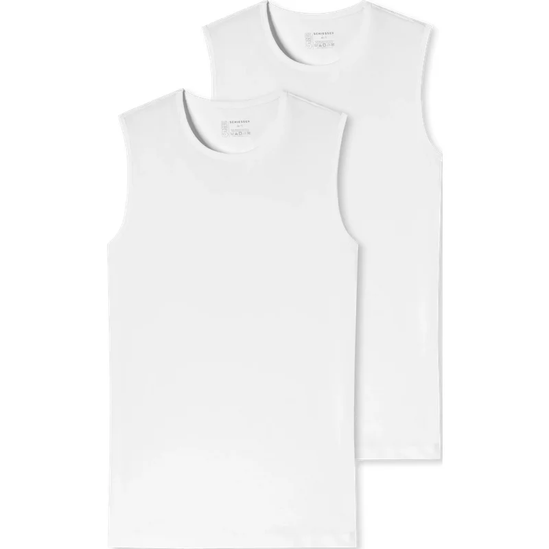 Tanktop voor heren van SCHIESSER;Biologisch katoen en elastaan;Smal model;Pak van 2 paar;Ronde hals;Ruglengte bij maat M: 73 cm