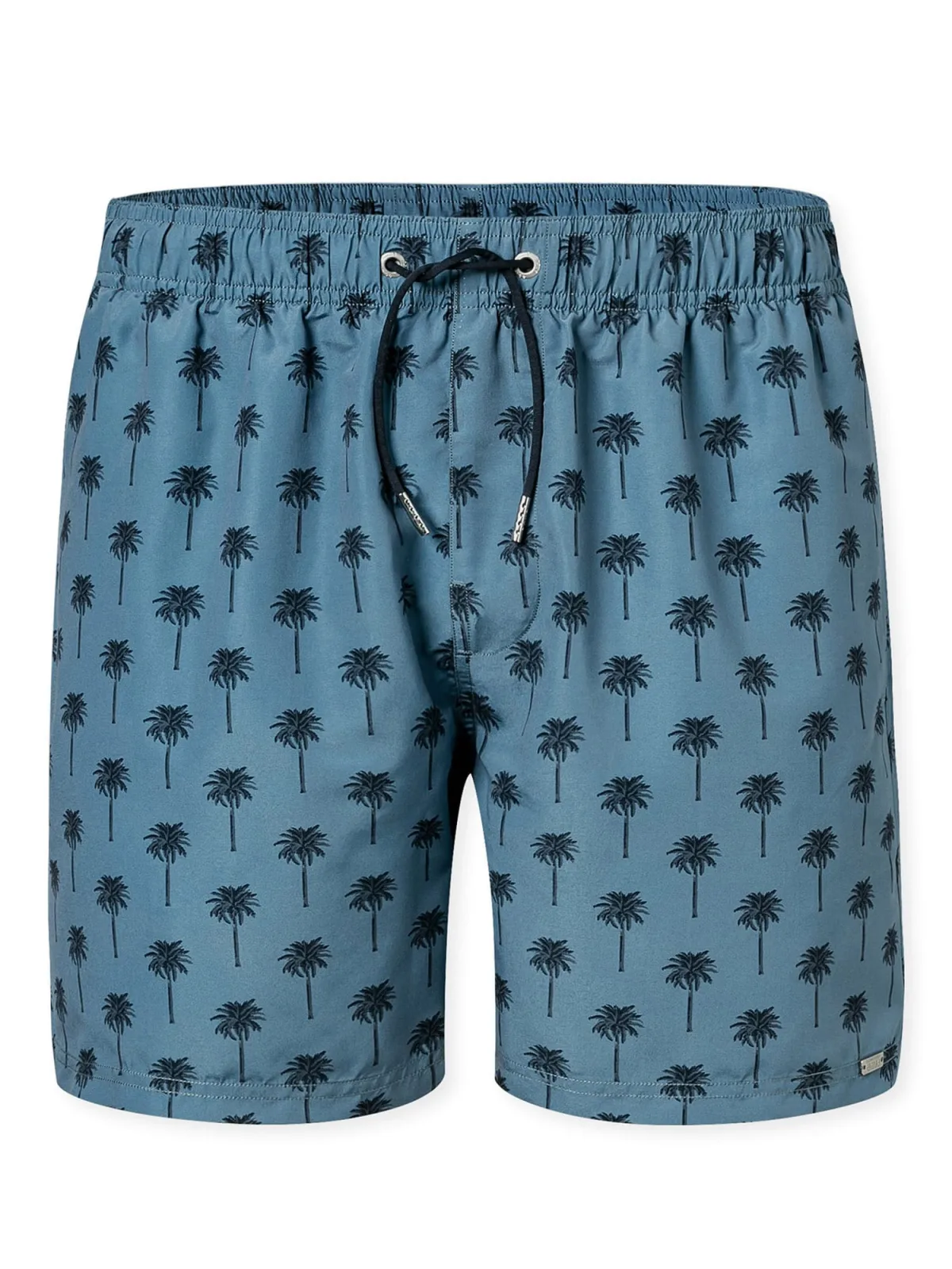 Schiesser Zwemshorts geweven gerecyclede palmbomen - atlantisch blauw - Aqua