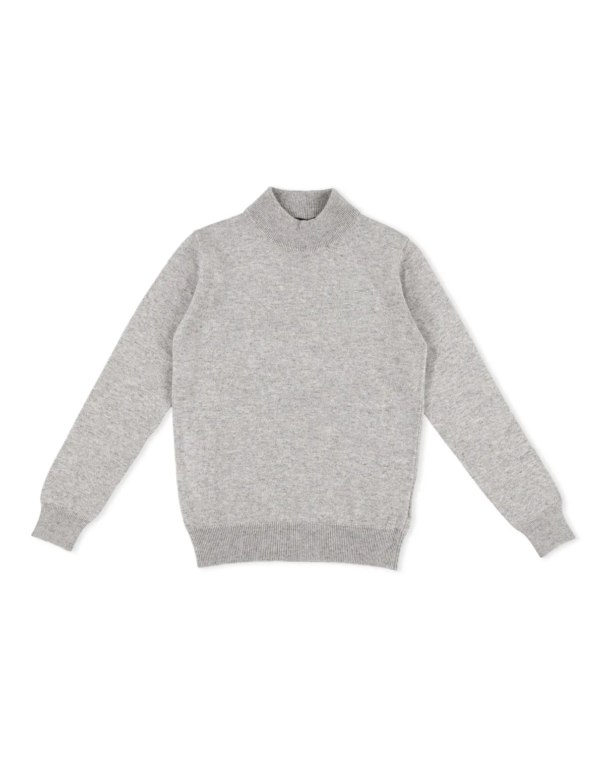 Billionaire cannot drop its coat of arms: one of its most significant symbols. On this knitted wool mock neck pullover it is embroidered at left chest. Woven ribbed neckline, cuffs and bottom hem.