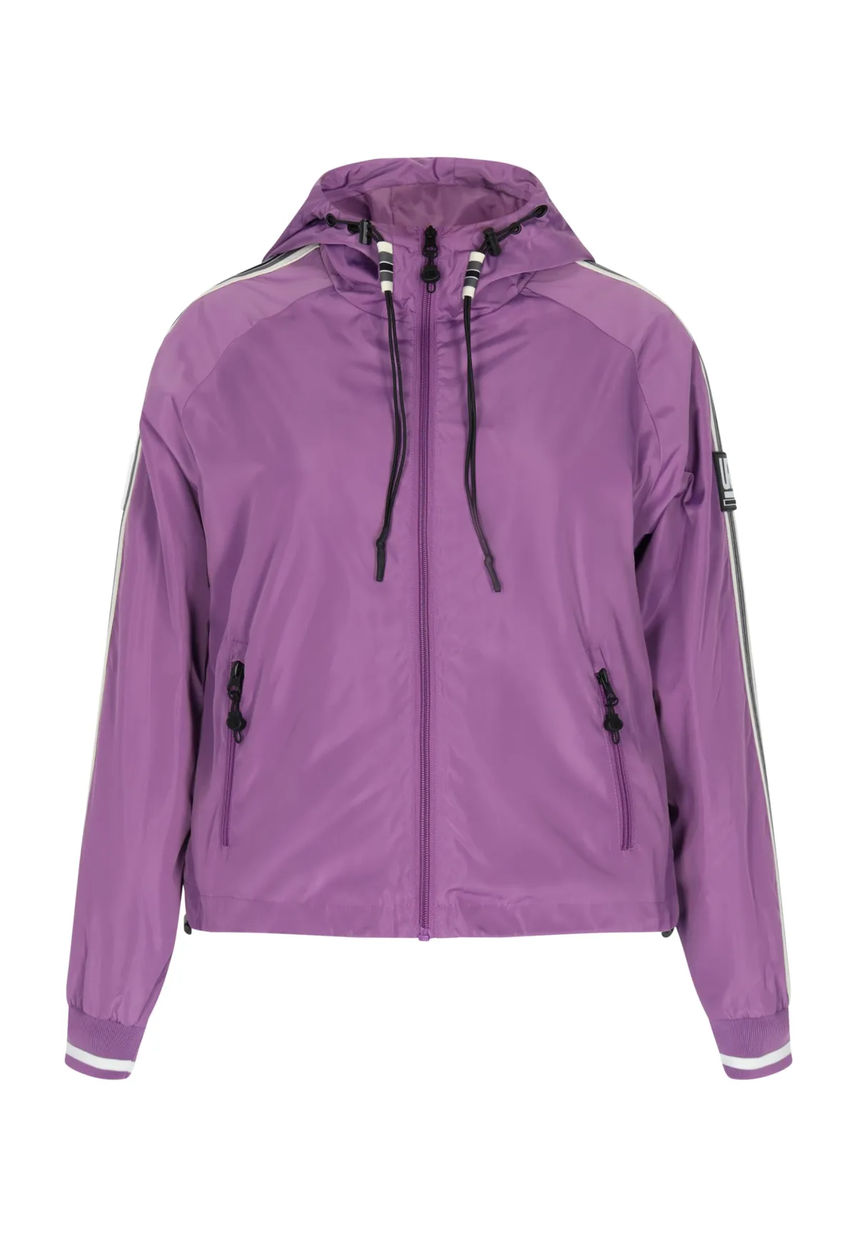 Dit lichtgewicht jack met capuchon is gemaakt voor stijl en functionaliteit en biedt veelzijdige slijtage. Met een ritssluiting aan de voorkant en verstelbare trekkoorden bij de capuchon en onderboord, zorgt het voor een perfecte pasvorm. Met heupzakken met ritssluiting en gestreepte manchetten voor extra details is deze jas perfect voor casual uitstapjes of lichte buitenavonturen. Blouson