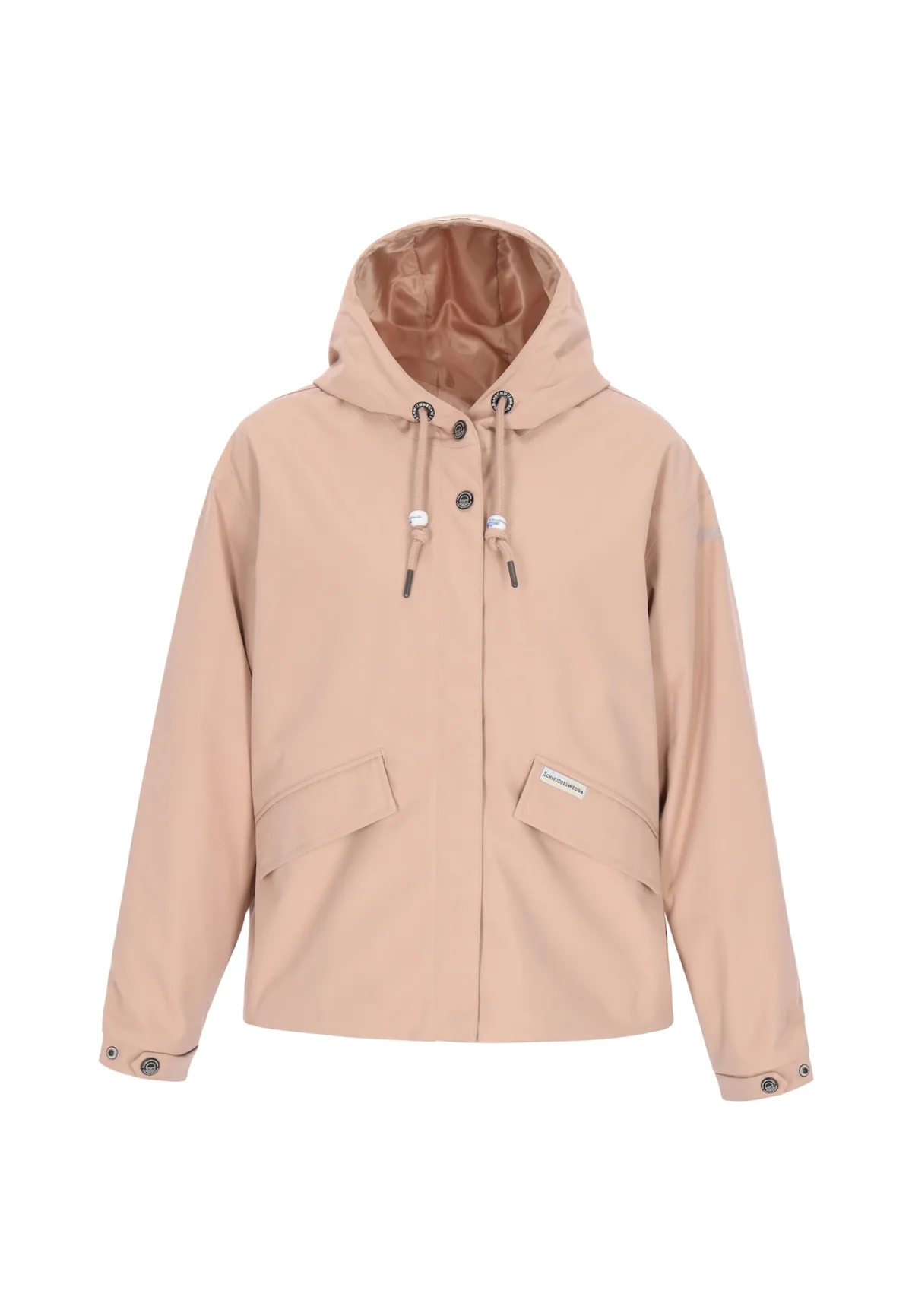 Design: Capuchon met trekkoord, Overcut schouder, Opzet-/flapzak; Type sluiting: Drukknoop; Type jas: Regenjas; Voering: Licht gevoerd; Motief: Effen; Extra's: Label patch/label flag, Label print; Pasvorm: Losse pasvorm