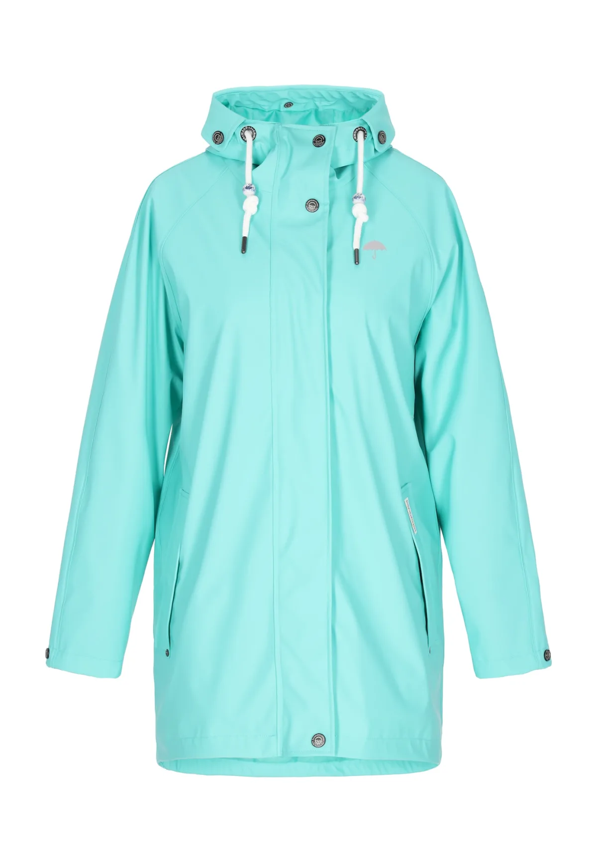 Type mantel: Regenjas; Design: Zakken aan de zijkant; Type sluiting: Ritssluiting; Voering: Licht gevoerd; Motief: Effen; Extra's: Metalen oogjes; Pasvorm: Losse pasvorm; Lengte: Korte pasvorm