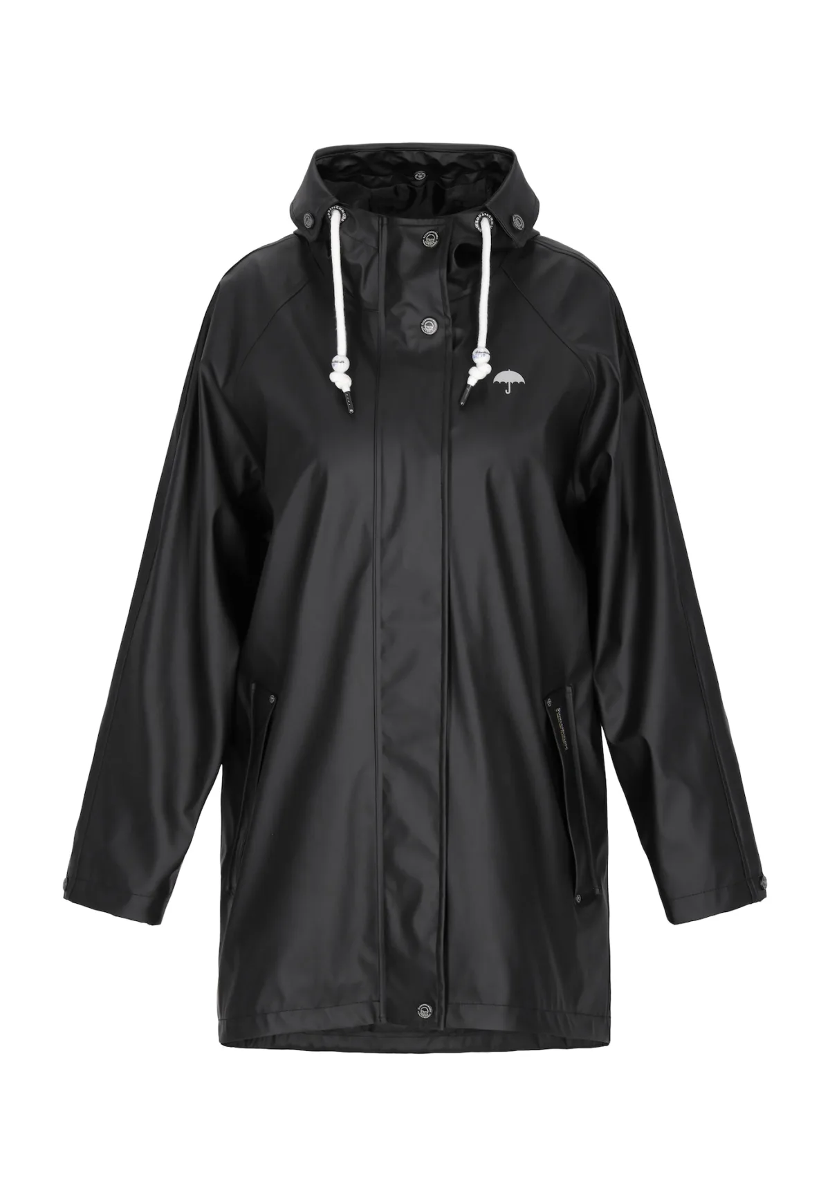 Type mantel: Regenjas; Design: Gevoerde zoom/rand; Type sluiting: Ritssluiting; Voering: Licht gevoerd; Motief: Effen; Extra's: Op staal naden; Pasvorm: Losse pasvorm; Lengte: Korte pasvorm
