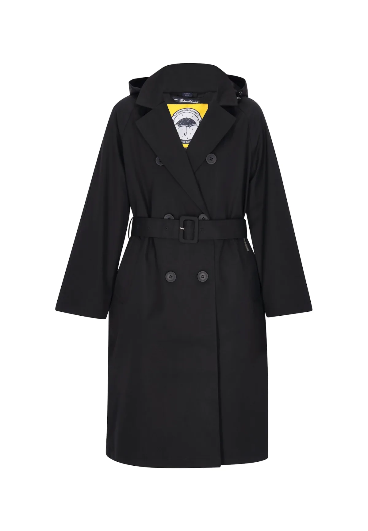 Type mantel: Trenchcoat; Design: Knop placket, Revers kraag, Met riem, Verstelbare capuchon; Type sluiting: Knoopsluiting; Voering: Licht gevoerd; Motief: Effen; Extra's: Op staal naden, Gladde stof, Riemlussen; Pasvorm: Normale pasvorm; Lengte: Normale lengte