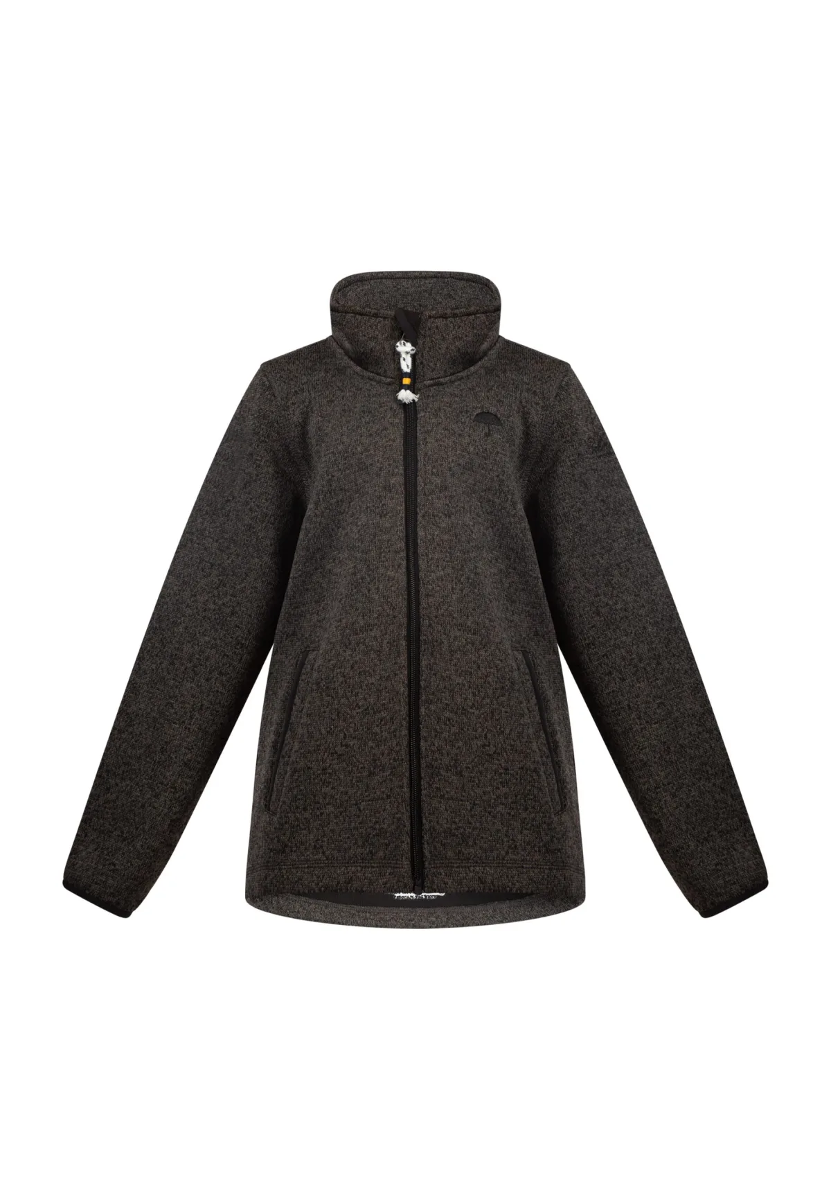 Perfect voor de overgang. De populaire zacht gebreide fleecejassen van Schmuddelwedda zijn nu ook verkrijgbaar voor kinderen. Ze hebben een stevige maar zachte buitenkant, een hoge opstaande kraag met kinbescherming en een verwarmende, zeer zachte fleece binnenkant. Ze zijn robuust, wasbaar en zijn naast hun functionaliteit ook een visueel hoogtepunt. Op de borst is de typische Schmuddelwedda-paraplu geborduurd en op de bovenarm en op de rug zijn ook uitgebreide logoborduursels aangebracht. Gebreide fleece jas