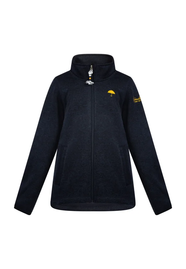 Perfect voor de overgang. De populaire zacht gebreide fleecejassen van Schmuddelwedda zijn nu ook verkrijgbaar voor kinderen. Ze hebben een stevige maar zachte buitenkant, een hoge opstaande kraag met kinbescherming en een verwarmende, zeer zachte fleece binnenkant. Ze zijn robuust, wasbaar en zijn naast hun functionaliteit ook een visueel hoogtepunt. Op de borst is de typische Schmuddelwedda-paraplu geborduurd en op de bovenarm en op de rug zijn ook uitgebreide logoborduursels aangebracht. Gebreide fleece jas