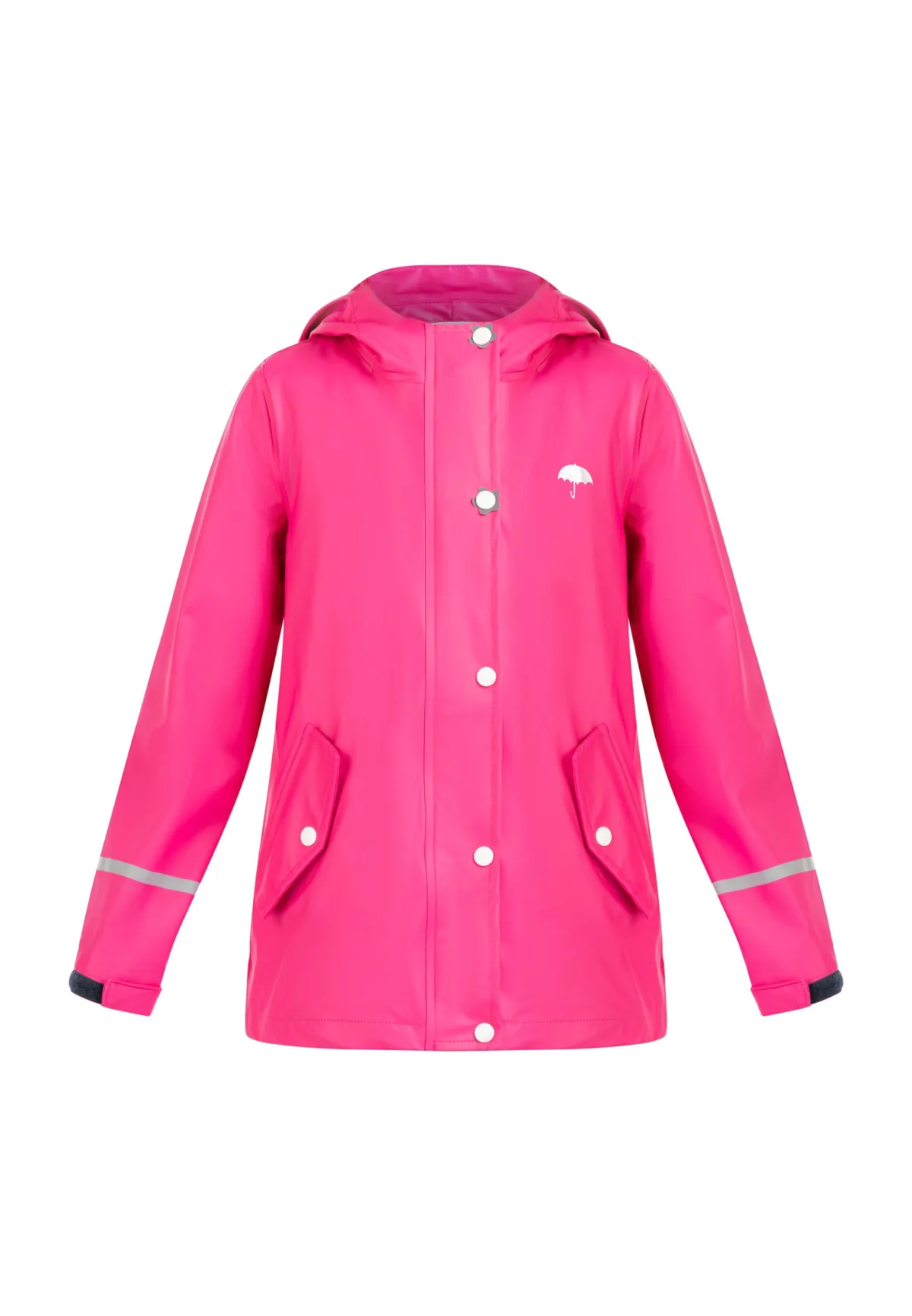 Buiten spelen en rennen, ook als het regent? In elk geval! Want met de regenjas van Schmuddelwedda zijn de kids goed beschermd. Het hoogwaardige buitenmateriaal is dankzij de coating volledig waterdicht en de naden zijn geseald zodat er geen vocht doordringt. Een zachte jersey gemêleerde voering eronder zorgt voor veel comfort. De lichtreflecterende strepen op de mouwen en de capuchon bieden bescherming en veiligheid, terwijl de logoprints en drukknopen in bloemenlook vooral populair zijn bij meisjes. Regenjas