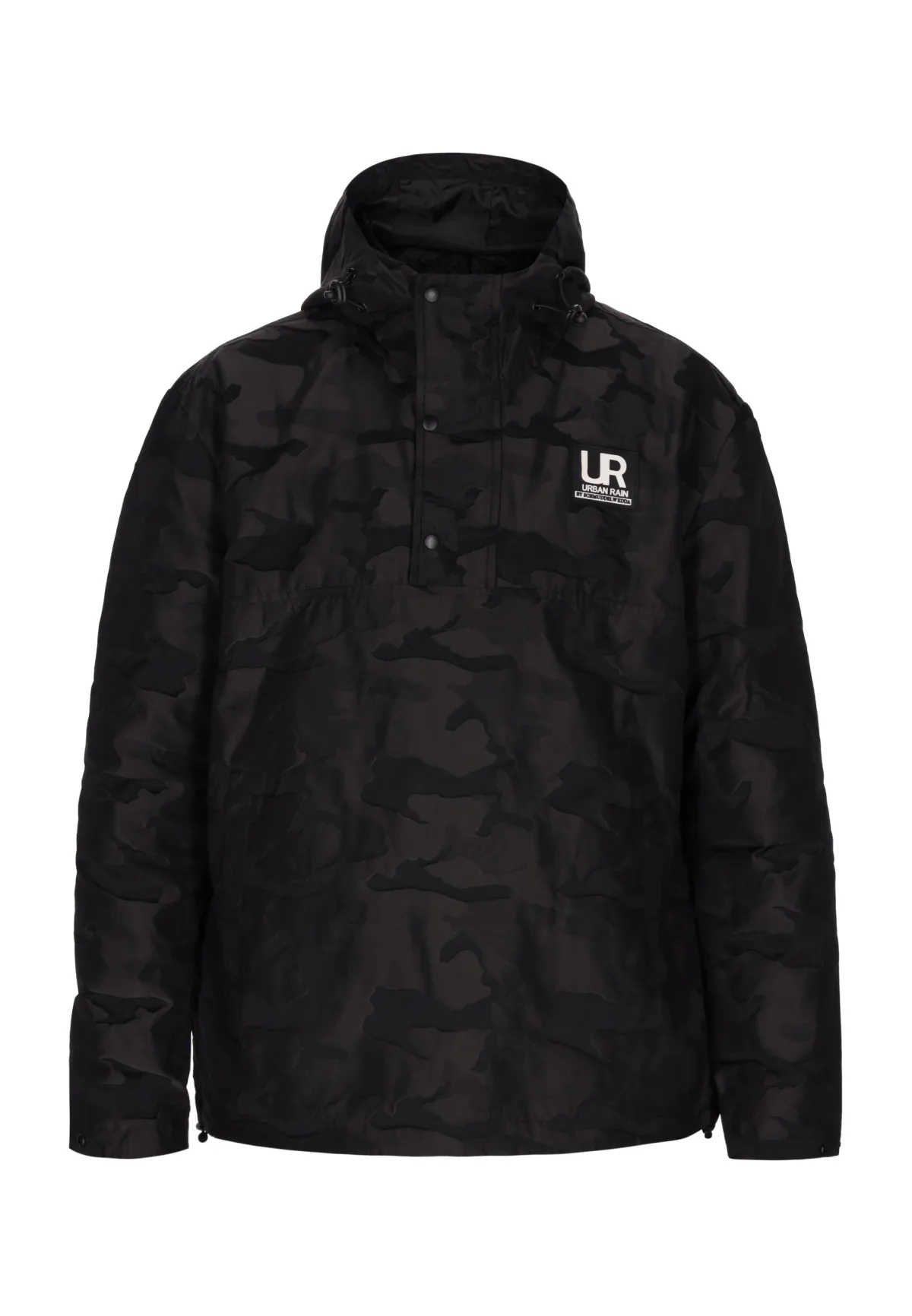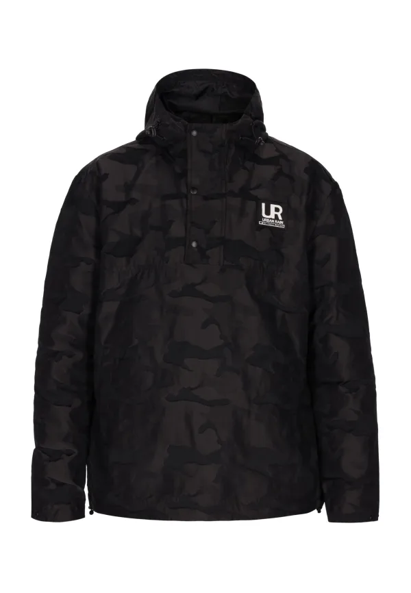 Maak kennis met een camouflagejack met capuchon. De ritssluiting aan de voorkant wordt gedeeltelijk afgedekt door een stoffen flap met drukknopen. Het heeft een hoge kraag en een verstelbare capuchon met trekkoord. Een logopatch siert de linkerborst, terwijl elastische manchetten op de lange mouwen zorgen voor een comfortabele pasvorm. De rechte zoom en normale pasvorm maken hem perfect voor dagelijks gebruik. Slip-on jas