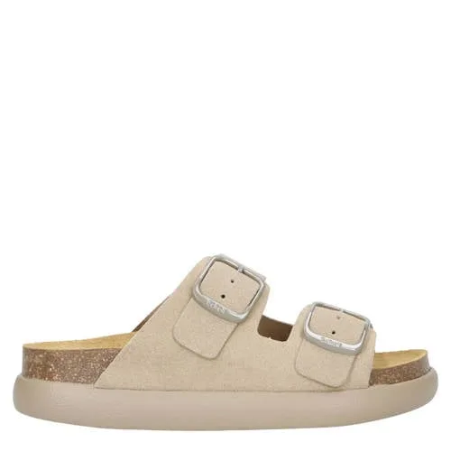 Deze Scholl slippers voor dames hebben een suède buitenkant en leren voering. Met een platte zool en een handige gesp zet je ze moeiteloos aan en uit. Geschikt voor dagelijks comfort en stijl.