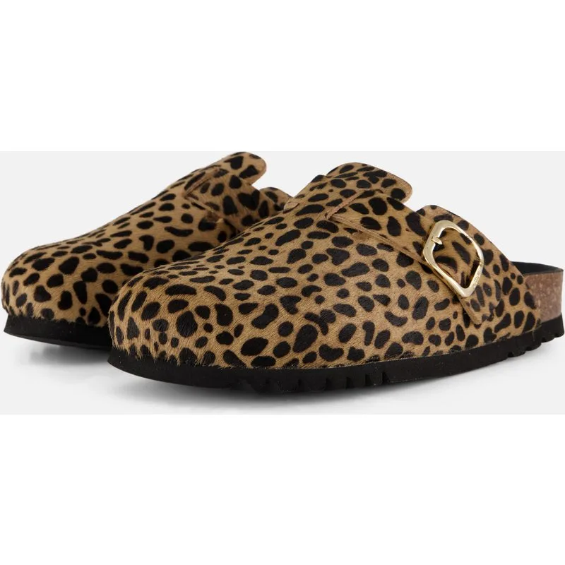Geef je outfit een trendy upgrade met deze panterprint Scholl Fae muiltjes voor dames. Deze echte musthave van dit moment combineert een opvallende uitstraling met een modieuze en relaxte vibe, waardoor je ze zowel thuis als buitenshuis draagt. De buitenkant is uitgevoerd in leer met een stijlvolle panterprint en voorzien van een band met gesp, wat zorgt voor een luxe en eigentijdse look. Dankzij het instapmodel en het voorgevormde voetbed zijn deze muiltjes ideaal voor dagelijks gebruik, van een ontspannen dag thuis tot een statement look buiten de deur.
