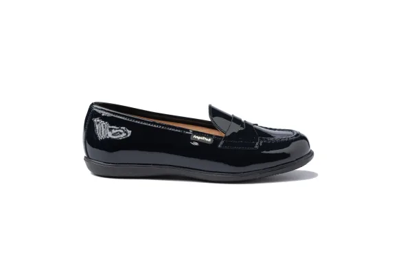 Een klassieke lijn. Elegant en comfortabel, ideaal voor schooluniformen. Mocassin-achtige schoen gemaakt van lakleer runderleer. Het interieur is gemaakt met een voering van natuurlijk leer, teen- en hielbeschermer, binnenzool met anatomische brug en antislip rubberen zool. Schoenen ontworpen en vervaardigd in Spanje.