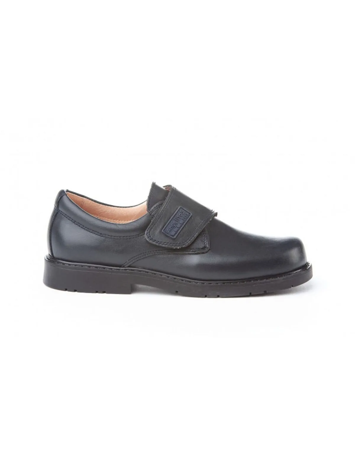 Een klassieke lijn. Comfortabel en flexibel, ideaal voor schooluniformen. College blucher-type schoen met versterkte PVC-neus van nappa runderleer met klittenbandsluiting. Het interieur is gemaakt met een voering van natuurlijk leer, teen- en hielbeschermer, binnenzool met anatomische brug en antislip rubberen zool. Schoenen ontworpen en vervaardigd in Spanje.