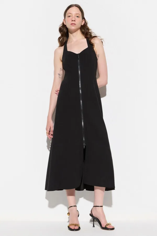 Design: Gevoerde zoom/rand; Type sluiting: Ritssluiting; Halstype: Carmen hals; Motief: Effen; Soort bandjes: Haltermodel; Details: Gedrapeerd; Extra's: Lichte stof; Lengte: 7/8 lengte; Pasvorm: Normale pasvorm; Armlengte: Mouwloos
