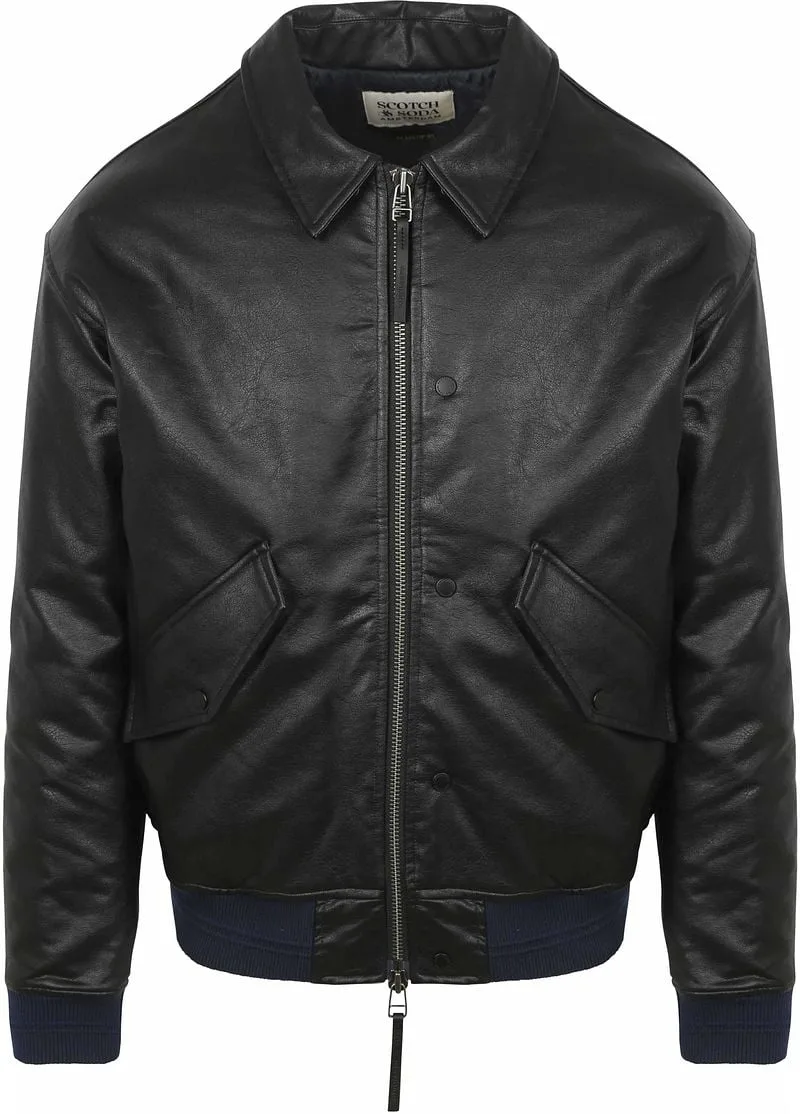 Scotch and Soda Faux Leather Bomberjack Zwart