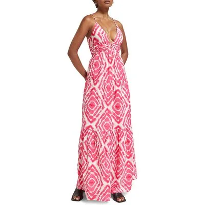 Scotch & Soda Maxi Waisted Dress Disco Tie Dye Pop Pink