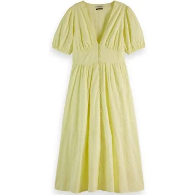 Scotch & Soda Midi Dress With Broderie Anglaise Lemon Yellow