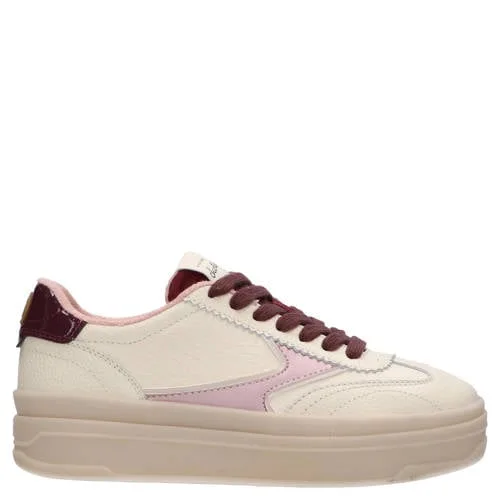 Scotch & Soda Minny leren sneakers ecru/donkerrood