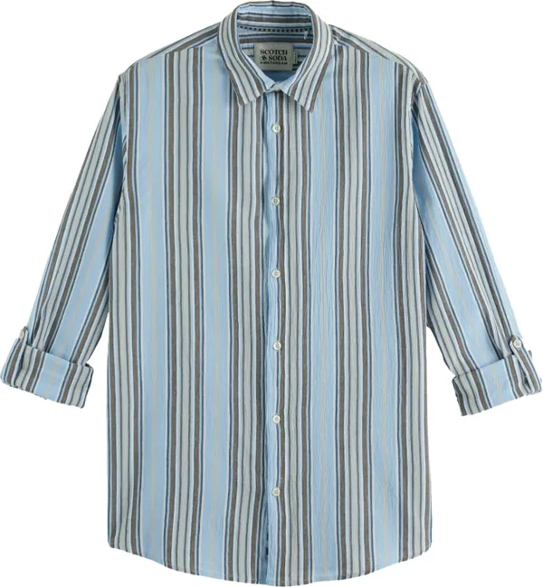 Scotch & Soda Overhemd Crinkled-stripe Blauw heren Prijzen