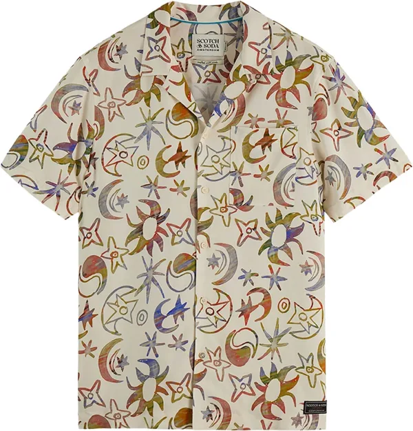 Het Overhemd Printed viscose van Scotch & Soda is een casual heren overhemd met een grafisch patroon. Voorzien van zakken op de voorzijde, een overhemdkraag en manchetten met knopen. Ideaal voor een ontspannen dag, waarbij stijl en comfort samenkomen.