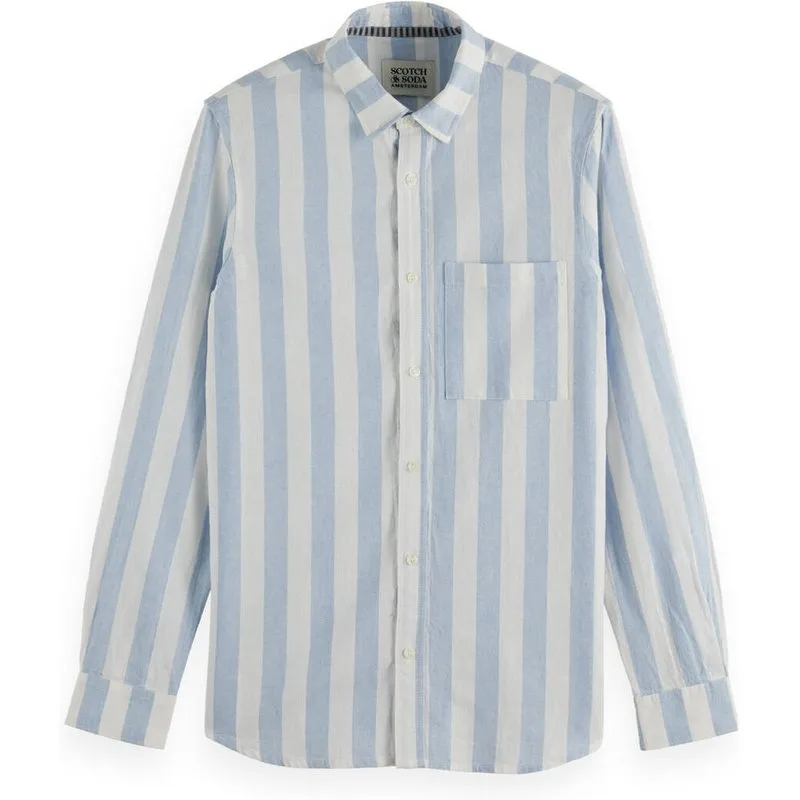 Scotch and Soda Linnen Blend Overhemd Streep Lichtblauw