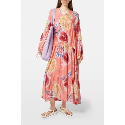 Scotch & Soda Printed Crinkle Maxi Dress Abstract Sun Pink