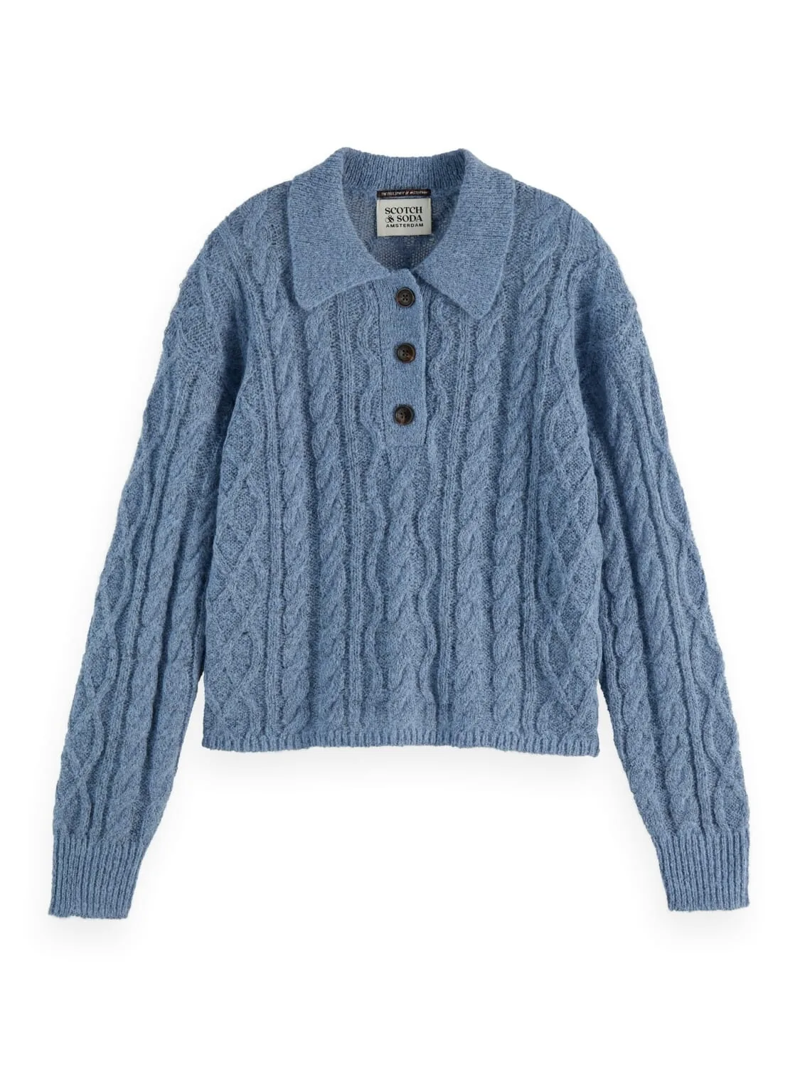 Gebreide pullover van Scotch & Soda voor dames;Materiaalmix met katoengehalte;Nauwsluitend model;Kabelpatroon;Platte kraag met korte knoopsluiting;Ribboorden;Ruglengte bij maat S: 56 cm;Mouwlengte bij maat S: 59 cm