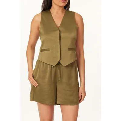 Scotch & Soda Satin Hidden Placket Vest Martini Olive
