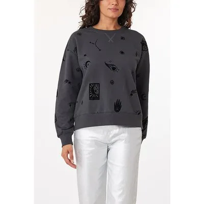 Scotch & Soda Sweater With Flocking Clack Sand / Black Prijzen