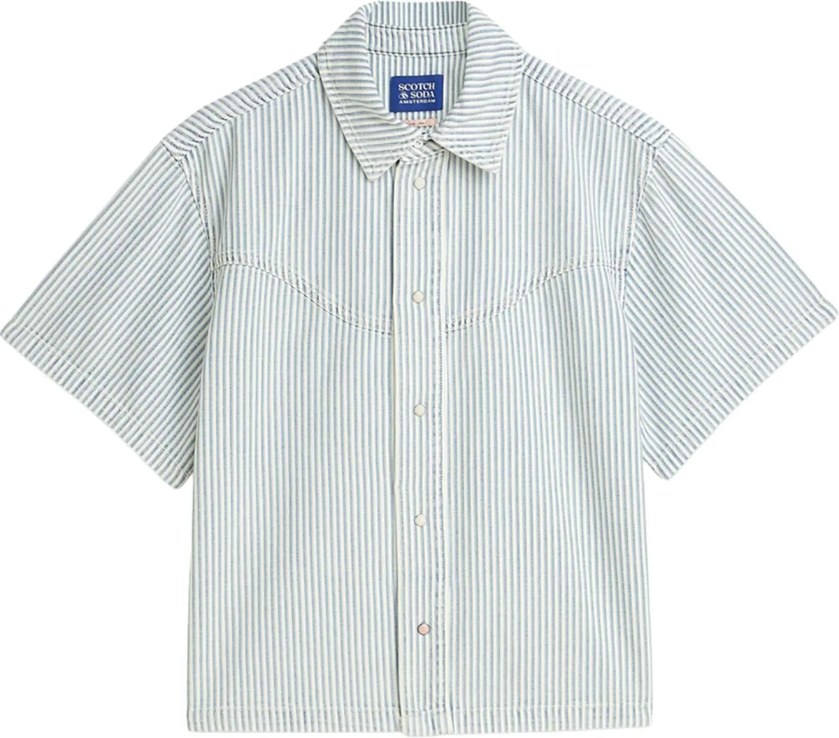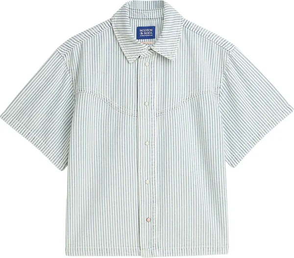 Top Denim van Scotch & Soda is een casual dames top korte mouw met een stijlvolle button down kraag. Het overhemd heeft een klassiek streeppatroon en praktische zakken op de voorzijde. Beschikbaar met korte mouw, perfect voor een moderne, dagelijkse uitstraling.