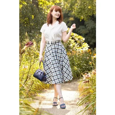 'Swing your way into summer' met deze Sea Blue Check Skirt in Navy! Dit fifties pareltje draag je hoog in je taille, vanwaar zij uitloopt in een klassieke, elegante swing rok. Uitgevoerd in een stevige maar soepel vallende katoen (stretcht niet!) met een classy ruitje in blauwtinten. Met deze cutie in je kledingkast ben jij klaar voor het warmere weer! * Swing rok * Zijwaartse steekzakken * Rits- en haaksluiting achterzijde * Valt over de knie bij een lengte van 1,70 m