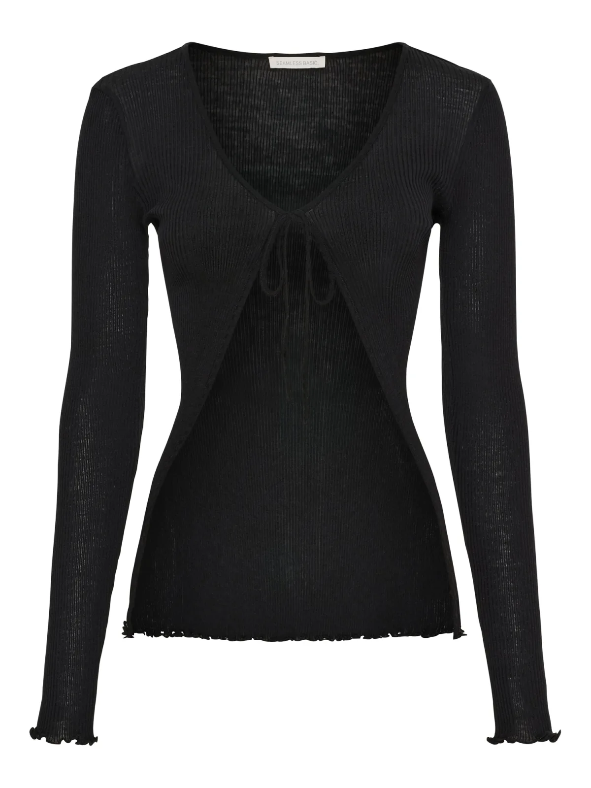 Design: Om te knopen/binden; Materiaal: Knitwear; Halstype: V-hals; Motief: Effen; Extra's: Voelt zacht aan; Pasvorm: Slanke pasvorm; Armlengte: Lange mouw; Lengte: Normale lengte