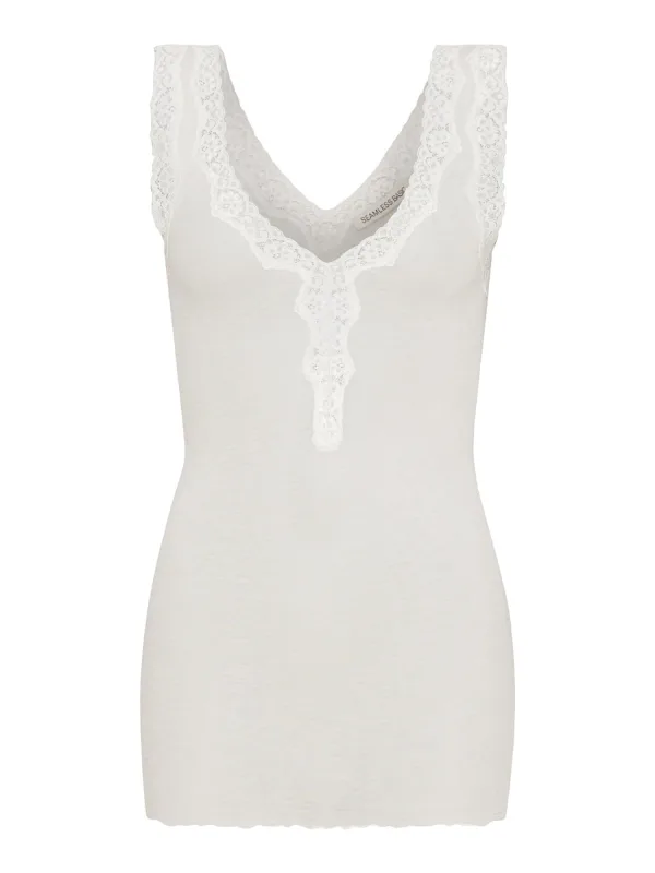 Materiaal: Jersey; Halstype: V-hals; Motief: Effen; Soort bandjes: Normale bandjes; Details: Kant; Pasvorm: Slanke pasvorm; Armlengte: Mouwloos; Lengte: Normale lengte