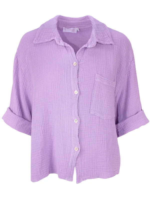 Blouse type: Klassieke blouse; Design: Borstzak; Type sluiting: Knoopsluiting; Materiaal: Mousseline; Motief: Effen; Kraag: Kentkraag; Extra's: Voelt zacht aan; Pasvorm: Losse pasvorm; Armlengte: Halve mouw; Lengte: Normale lengte