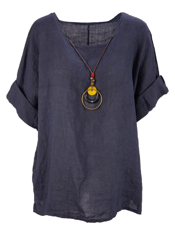 Blouse type: Blouseshirt; Design: Gevoerde zoom/rand; Materiaal: Linnen; Motief: Effen; Kraag: Zonder kraag; Extra's: Op staal naden; Pasvorm: Wijde pasvorm; Armlengte: Driekwart mouw; Lengte: Lange pasvorm