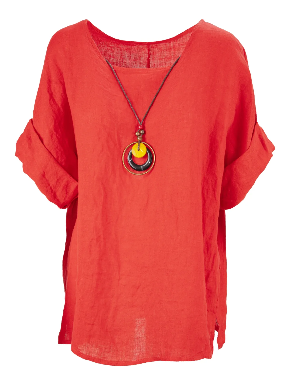 Blouse type: Blouseshirt; Design: Gevoerde zoom/rand; Materiaal: Linnen; Motief: Effen; Kraag: Zonder kraag; Extra's: Op staal naden; Pasvorm: Wijde pasvorm; Armlengte: Driekwart mouw; Lengte: Lange pasvorm