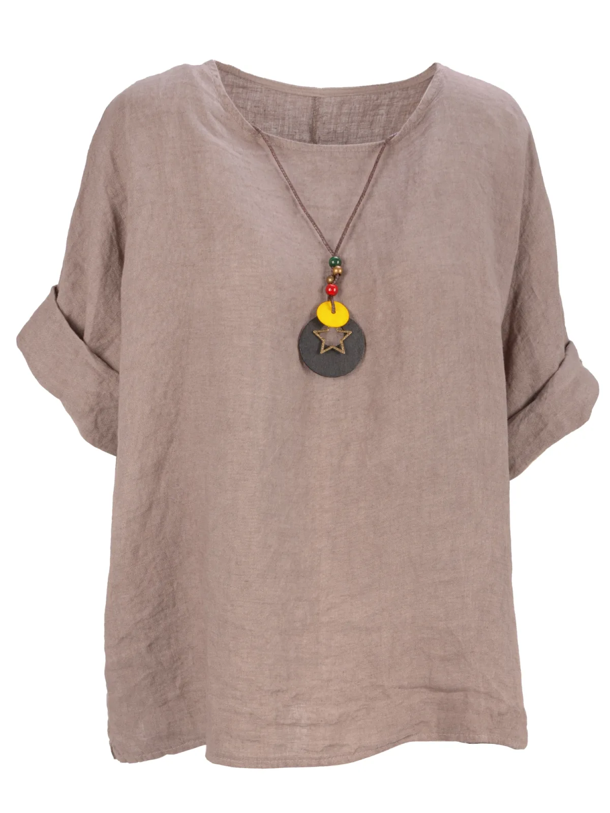 Blouse type: Blouseshirt; Design: Zijdelingse inkepingen; Materiaal: Linnen; Motief: Effen; Kraag: Zonder kraag; Extra's: Op staal naden; Pasvorm: Wijde pasvorm; Armlengte: Driekwart mouw; Lengte: Lange pasvorm