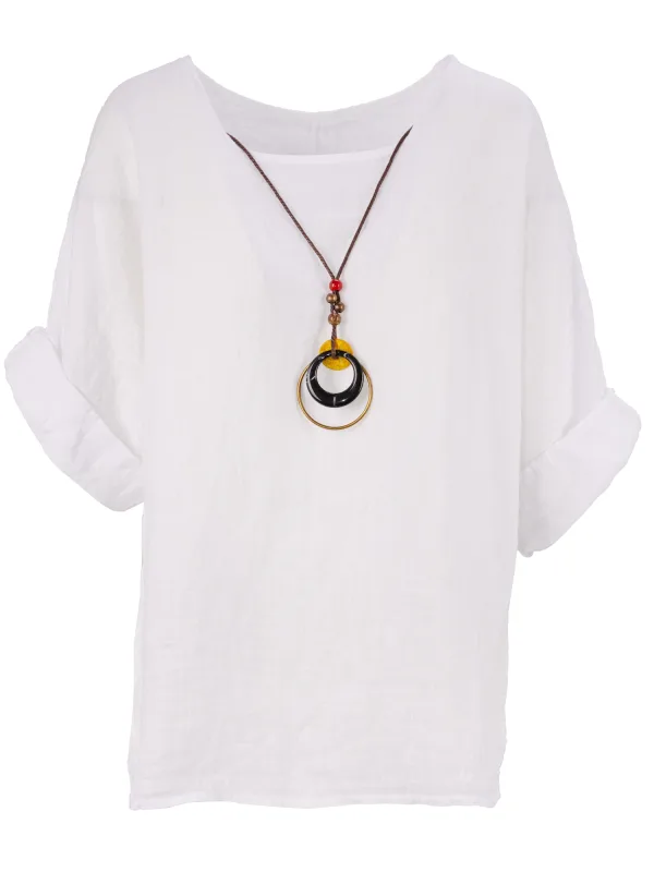 Blouse type: Blouseshirt; Design: Mouw revers, Oversized; Materiaal: Linnen; Motief: Effen; Kraag: Zonder kraag; Extra's: Lichte stof; Pasvorm: Wijde pasvorm; Armlengte: Driekwart mouw; Lengte: Lange pasvorm