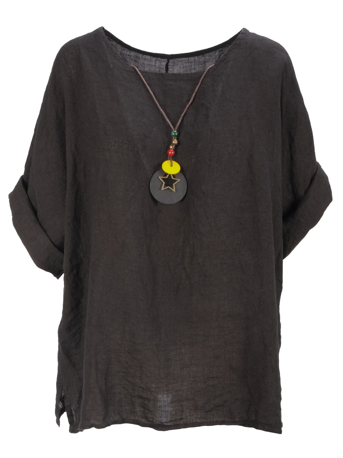 Blouse type: Blouseshirt; Design: Mouw revers, Oversized; Materiaal: Linnen; Motief: Effen; Kraag: Zonder kraag; Extra's: Lichte stof; Pasvorm: Wijde pasvorm; Armlengte: Driekwart mouw; Lengte: Lange pasvorm