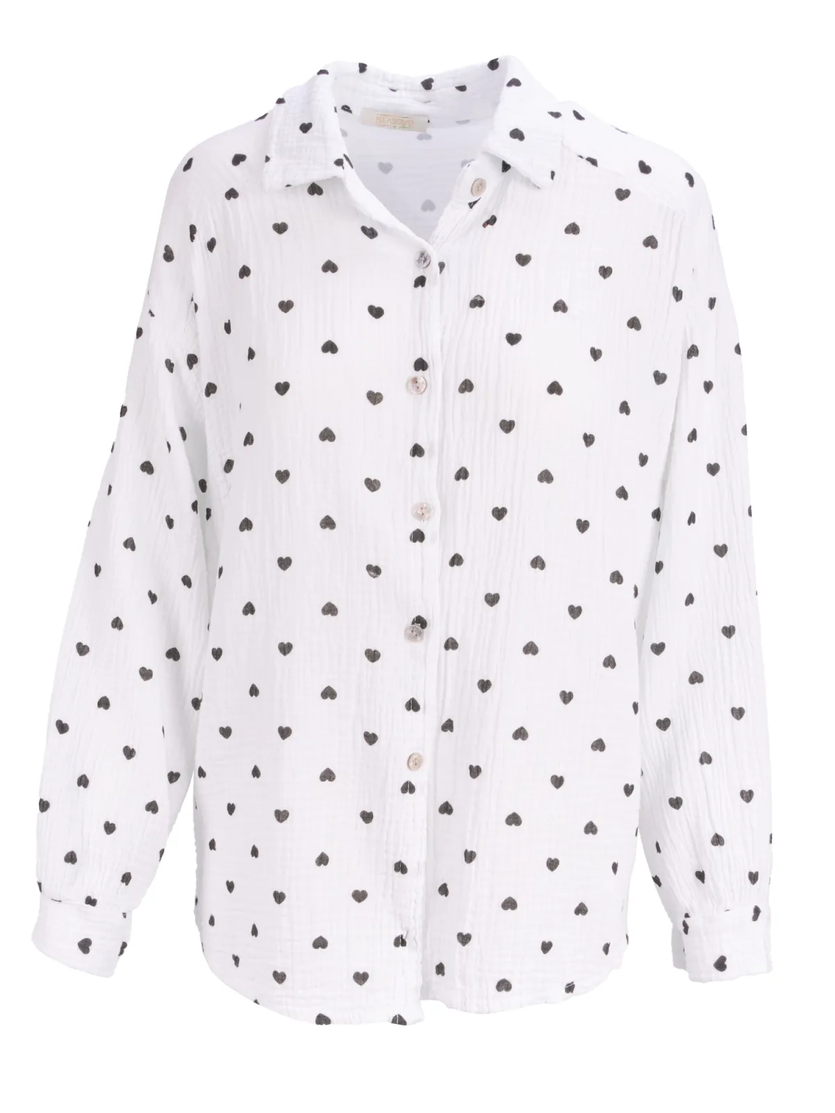 Blouse type: Klassieke blouse; Design: Gevoerde zoom/rand, Knop placket, Turn-down kraag; Type sluiting: Knoopsluiting; Materiaal: Mousseline; Kraag: Kentkraag; Details: Gedrapeerd; Extra's: All-over patroon, Voelt zacht aan; Pasvorm: Losse pasvorm; Armlengte: Lange mouw; Lengte: Normale lengte