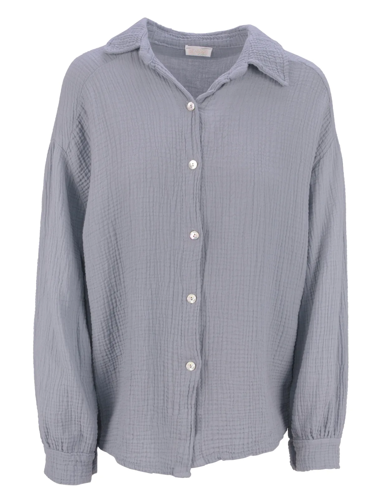 Blouse type: Klassieke blouse; Design: 1-knoops manchetten, Knop placket, Ronde zoom, Knop sluiting, Contrasterende inserts; Type sluiting: Knoopsluiting; Materiaal: Mousseline; Motief: Effen; Kraag: Kentkraag; Details: Gedrapeerd; Extra's: Label patch/label flag, Op staal naden; Pasvorm: Wijde pasvorm; Armlengte: Lange mouw; Lengte: Normale lengte