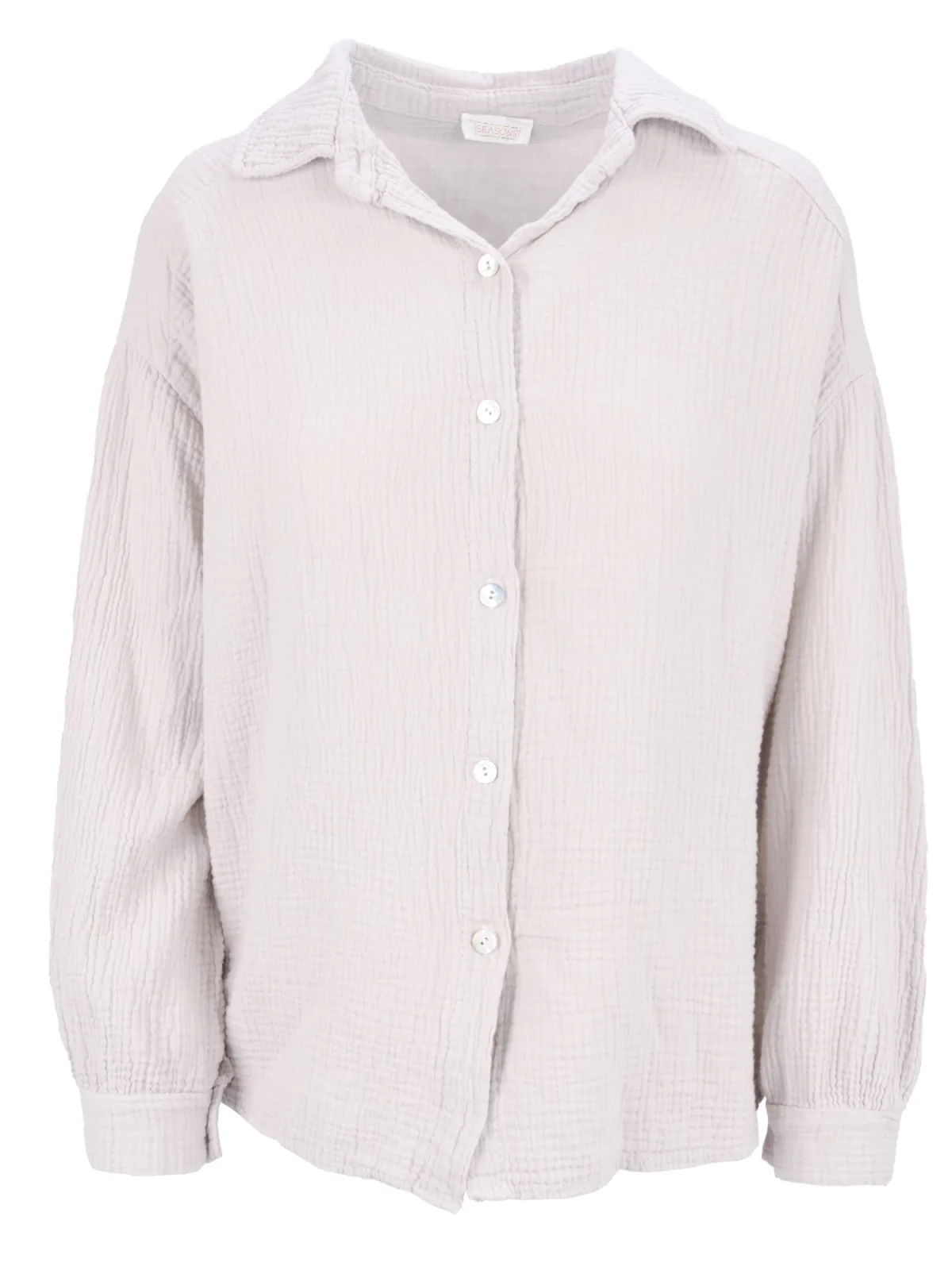 Blouse type: Klassieke blouse; Design: 1-knoops manchetten, Knop placket, Ronde zoom, Knop sluiting; Type sluiting: Knoopsluiting; Materiaal: Mousseline; Motief: Effen; Kraag: Kentkraag; Details: Gedrapeerd; Extra's: Label patch/label flag, Op staal naden; Pasvorm: Wijde pasvorm; Armlengte: Lange mouw; Lengte: Normale lengte